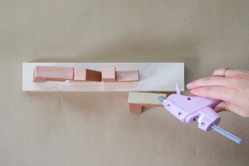 Once my piece of wood was cut, I estimated where I wanted my letters to go by setting them in place — but I didn’t glue them yet. I just move them around until I was happy with the placement.