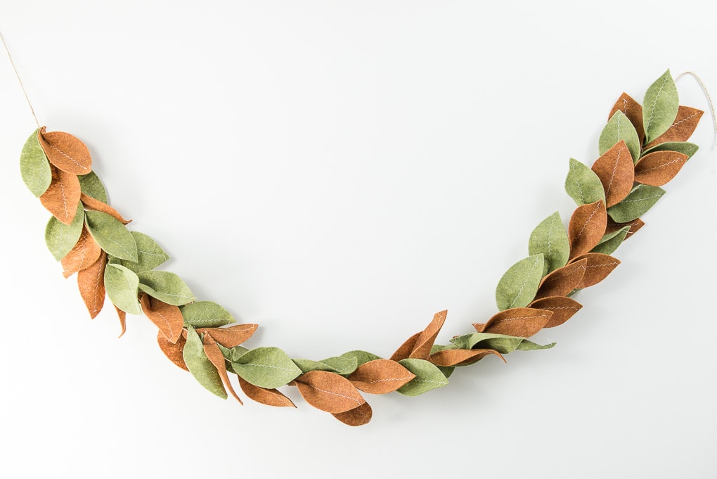 Cut out magnolia leaves shapes from felt using your Cricut and attach them together to create a stunning garland.