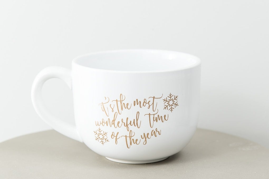 Sip on a delicious hot cocoa in a DIY “Most Wonderful Time of the Year” mug. This project combines functionality with festive flair.