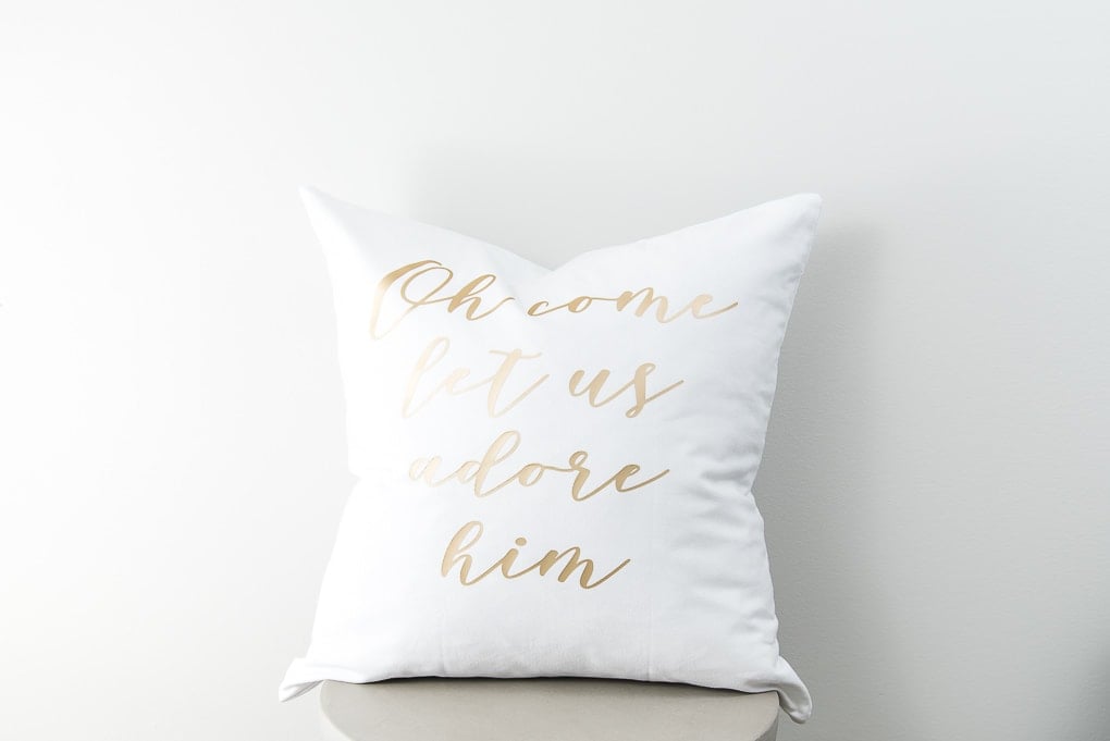 Celebrate the true reason for the season with a DIY “Oh Come Let Us Adore Him” pillow.