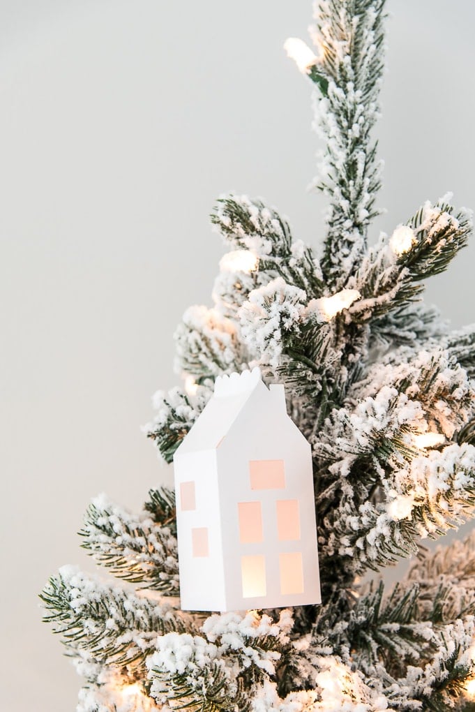 Craft a 3D house shape with your Cricut. Attach the base to a light strand on your Christmas tree and watch it glow.