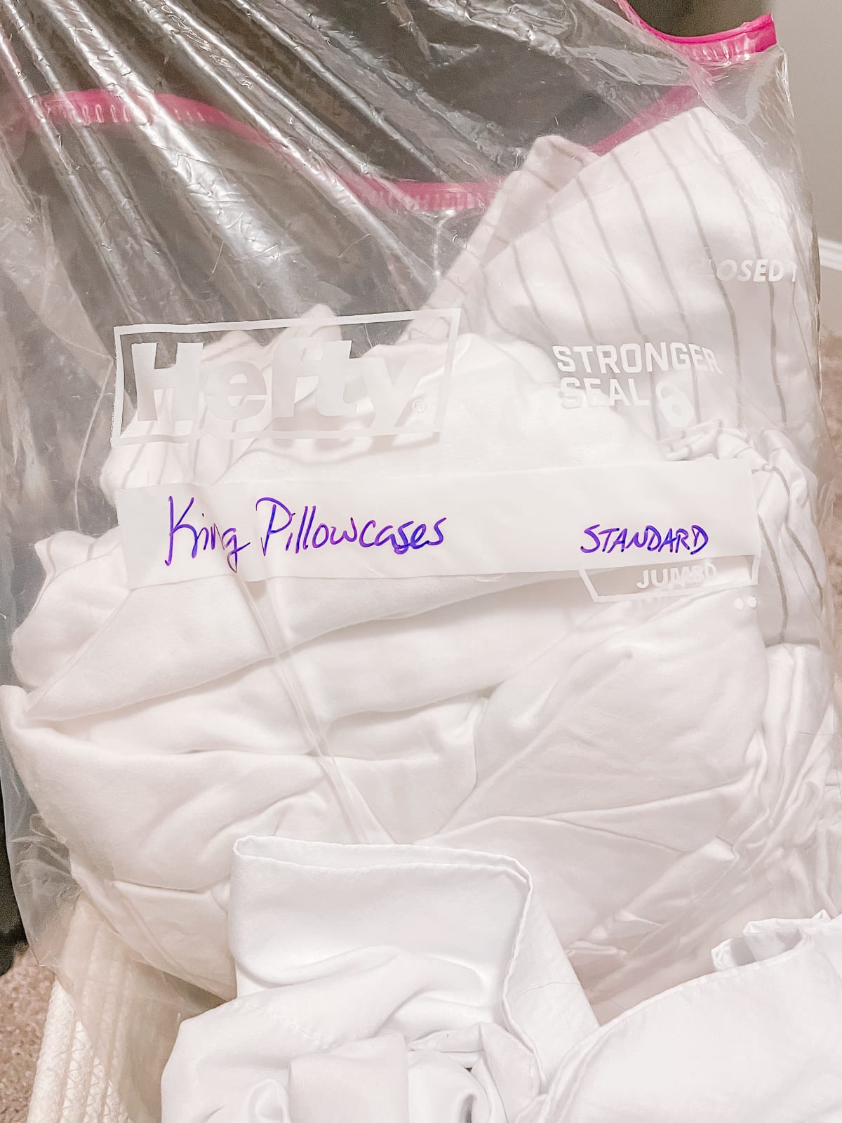 For example, I have a bag for queen pillowcases and another bag for king pillowcases.