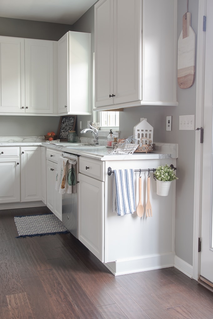 I forgot that you have a bright white kitchen too! I love decorating it but sometimes it’s REALLY white. And, for photos I normally take out all of the “real life” things that tend to make it look a little more cluttered, so that makes it look even more white HAHA.