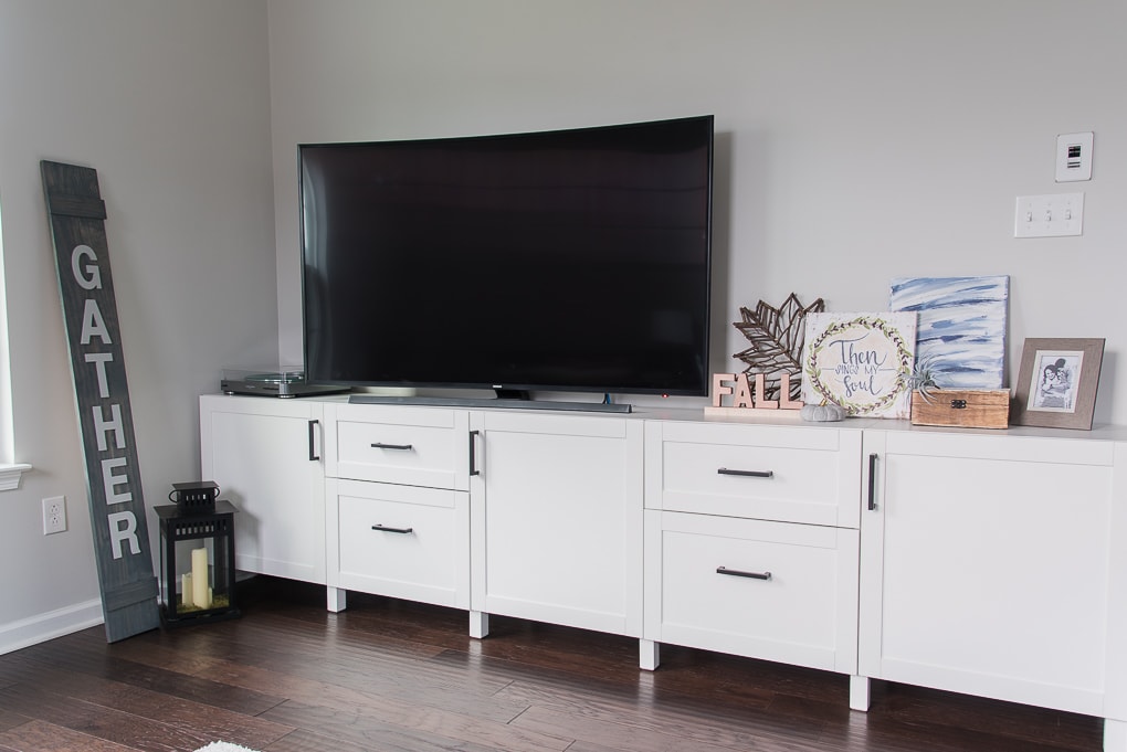 One of my favorite things about new media center is actually that I have more room to decorate! I put together this simple fall display using a combination of items I had, items I bought, and some items that I DIY’ed.